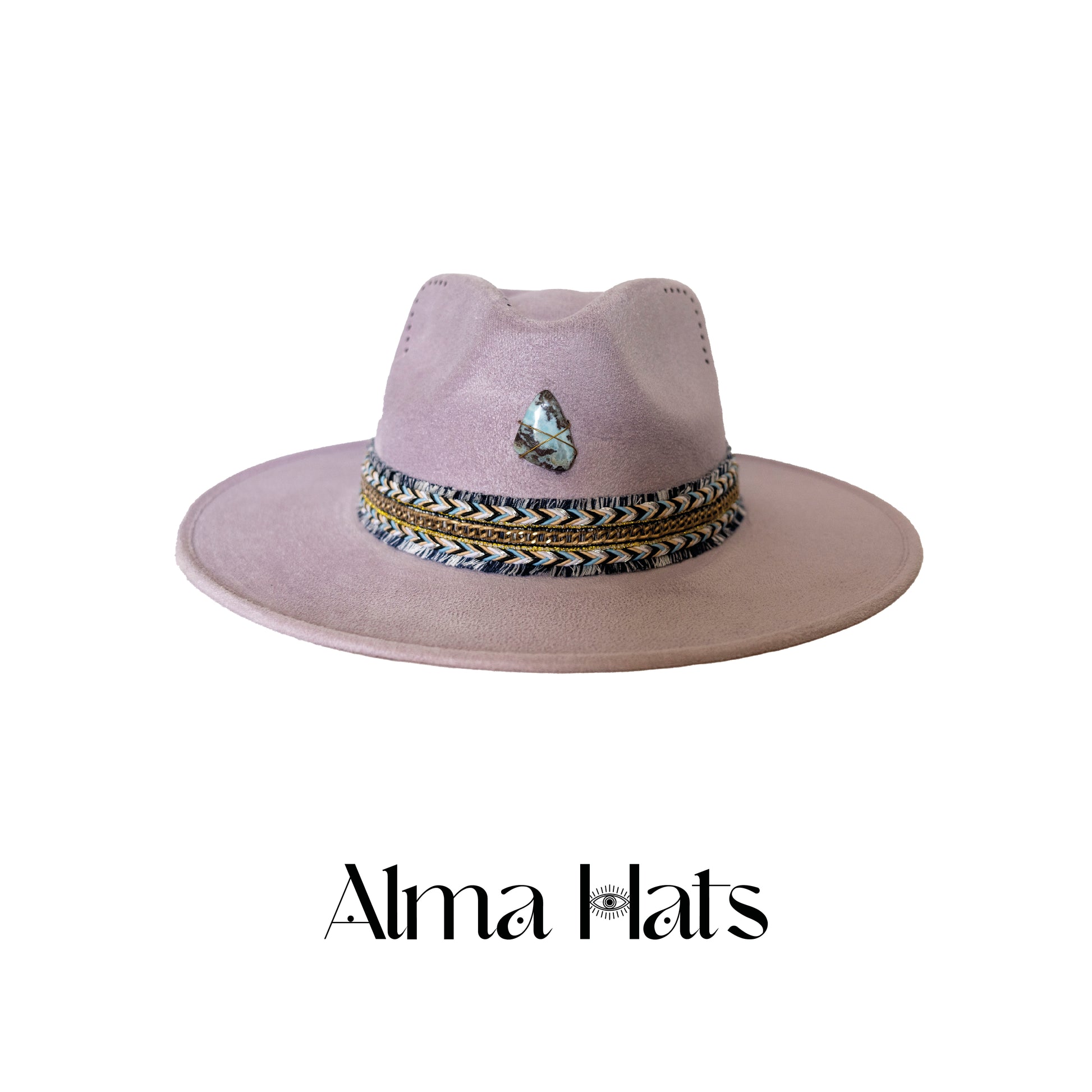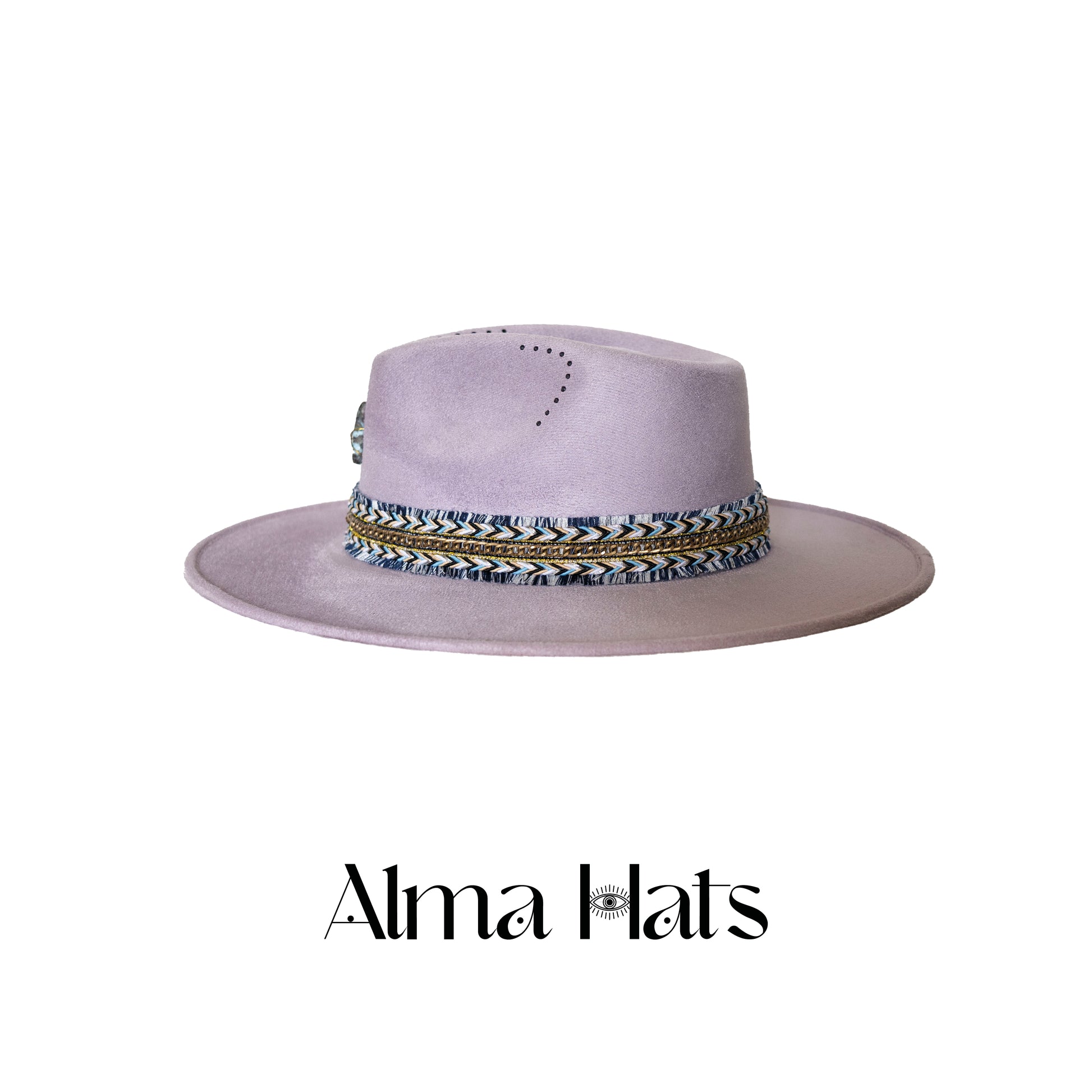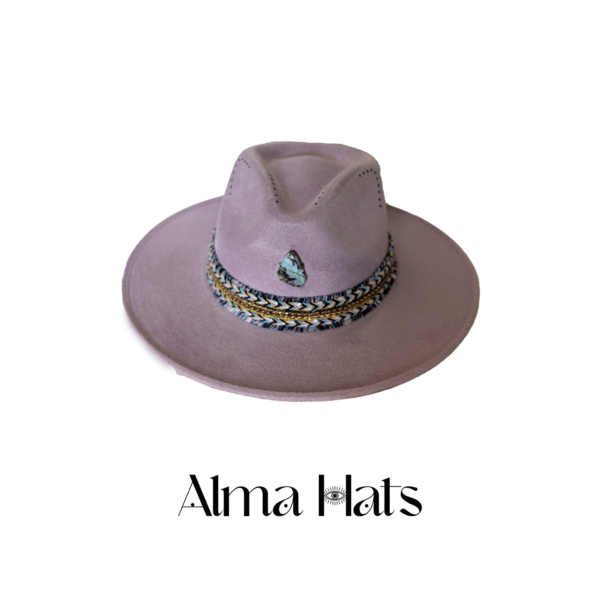 Handmade Lila Fedora with Larimar & Pyrography Art – One of a Kind