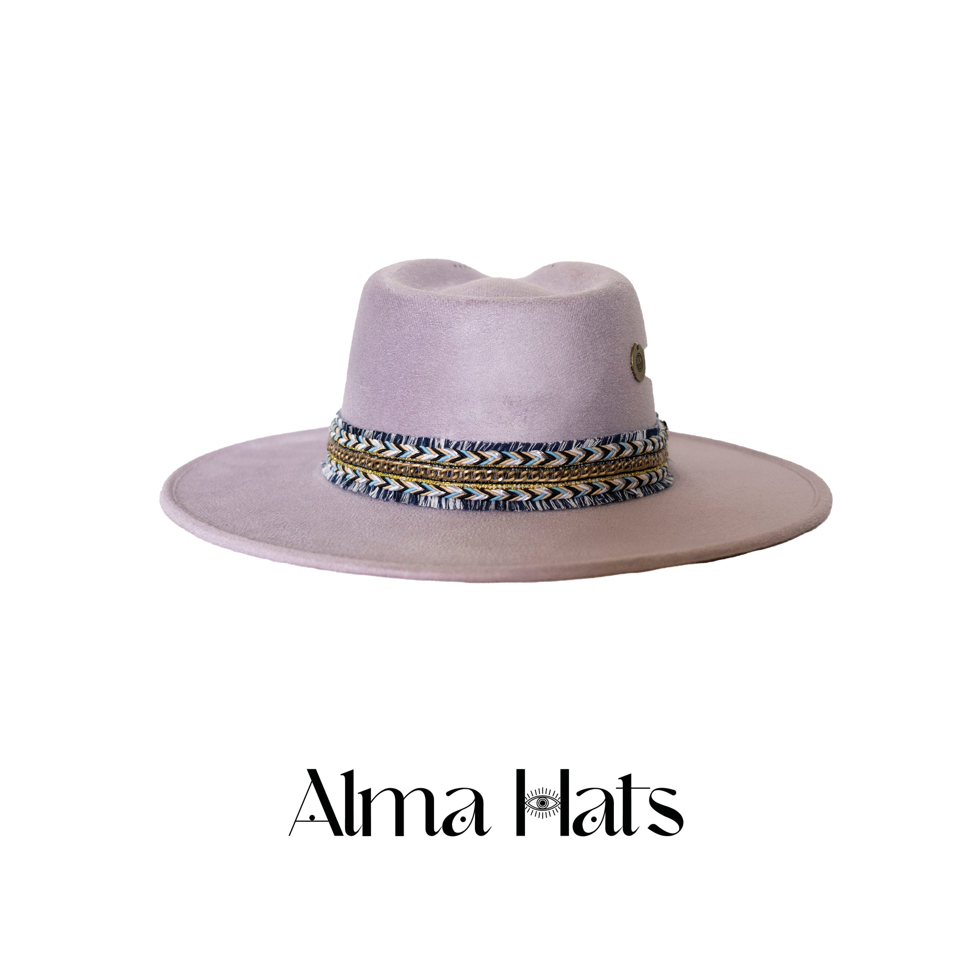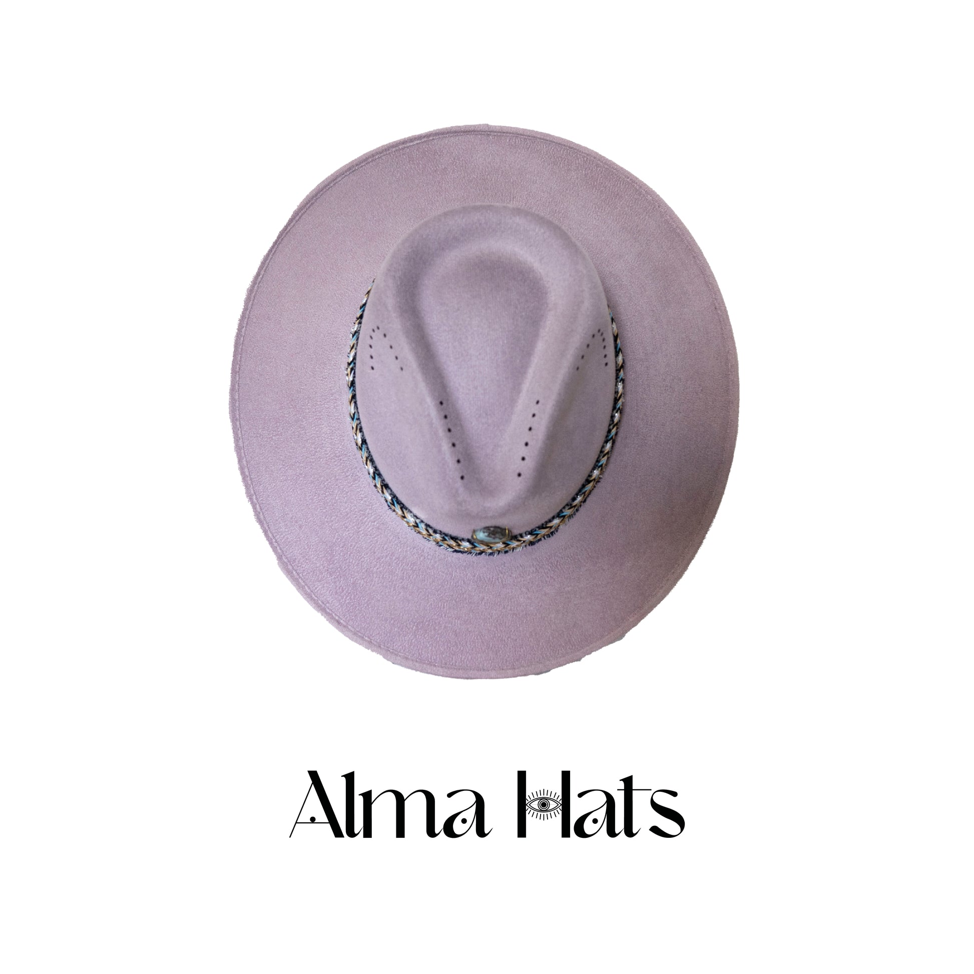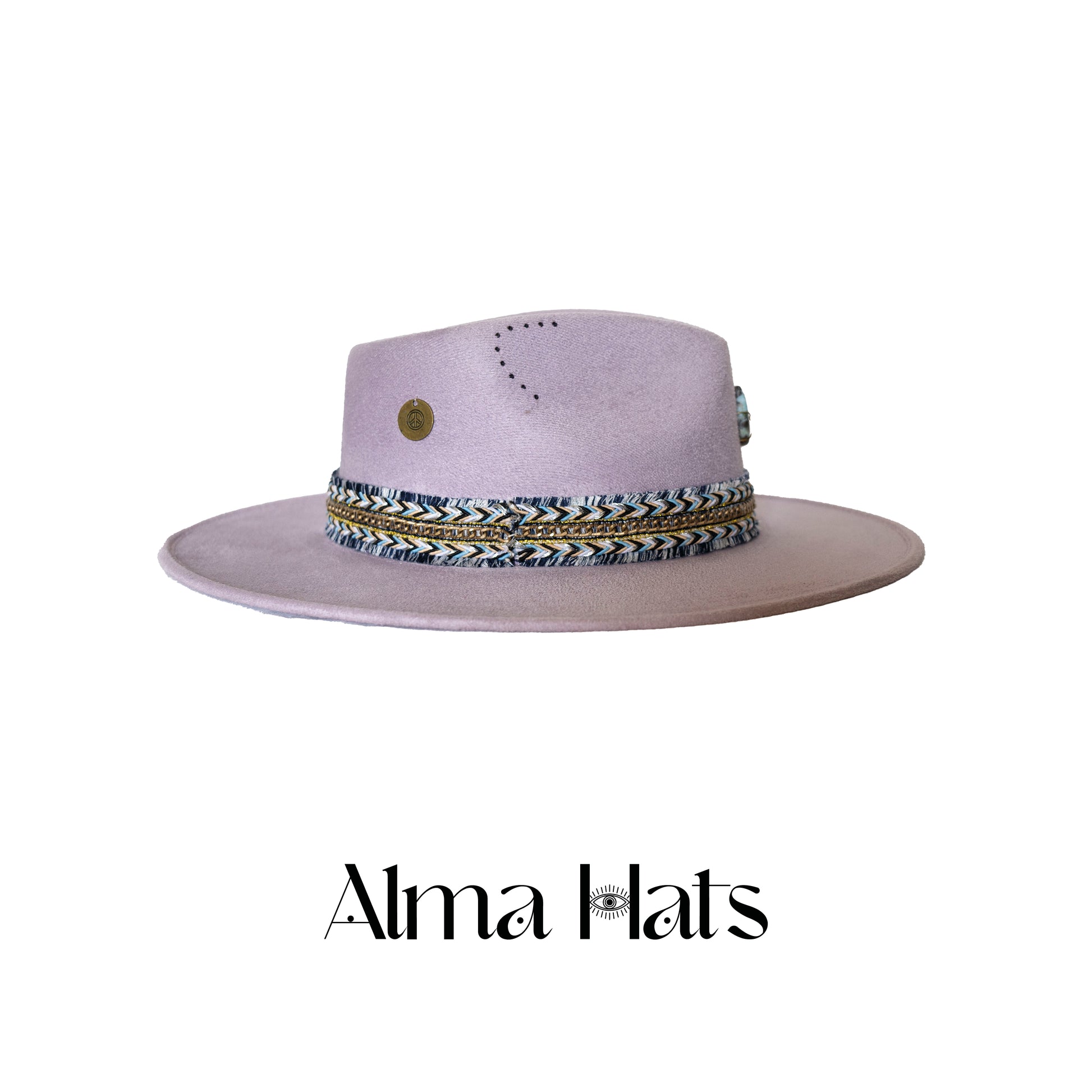 Handmade Lila Fedora with Larimar & Pyrography Art – One of a Kind