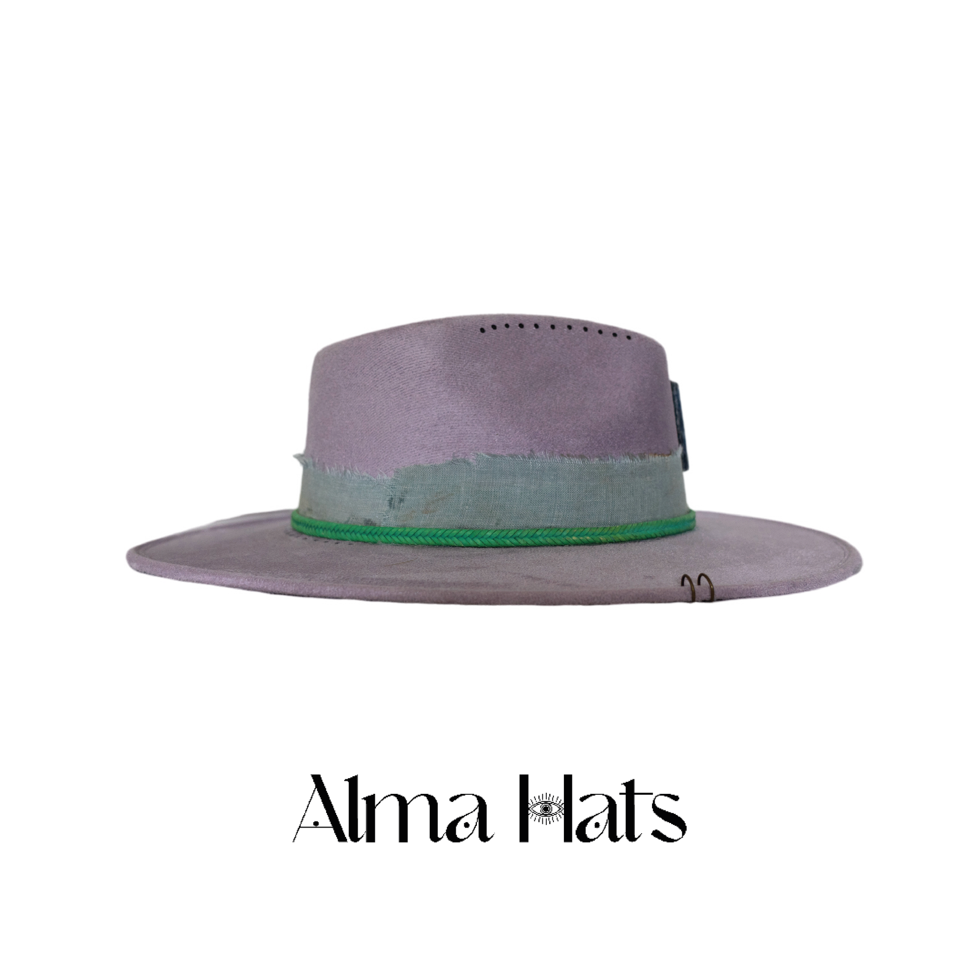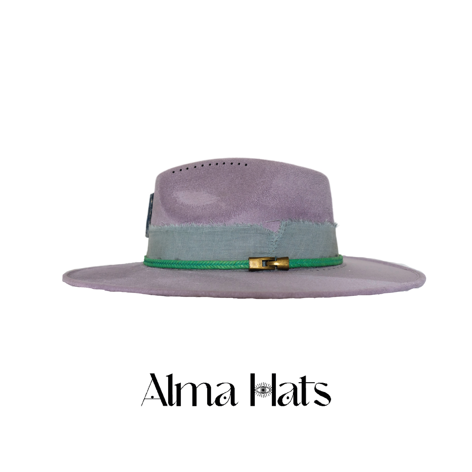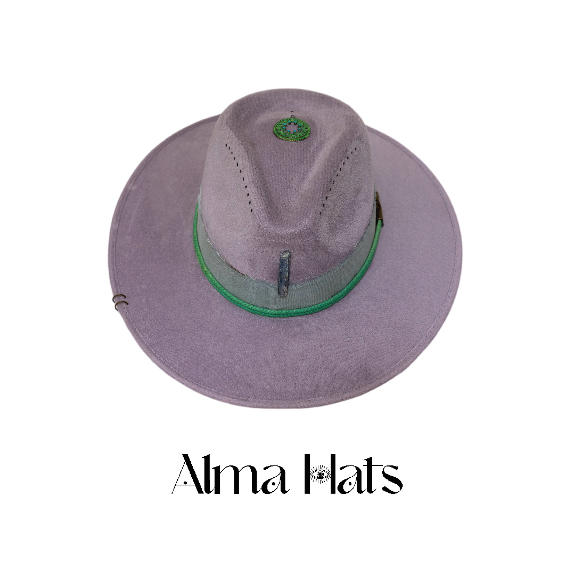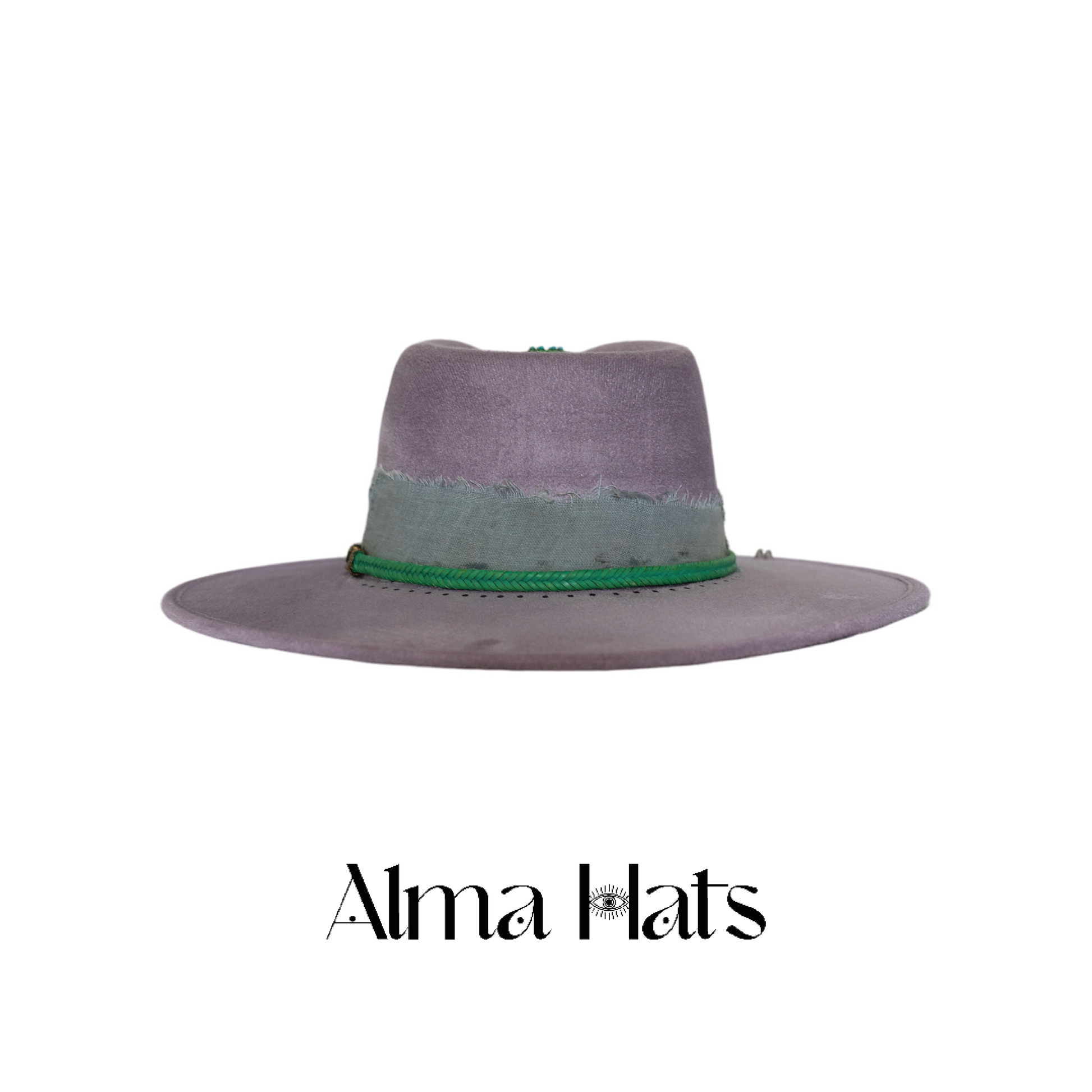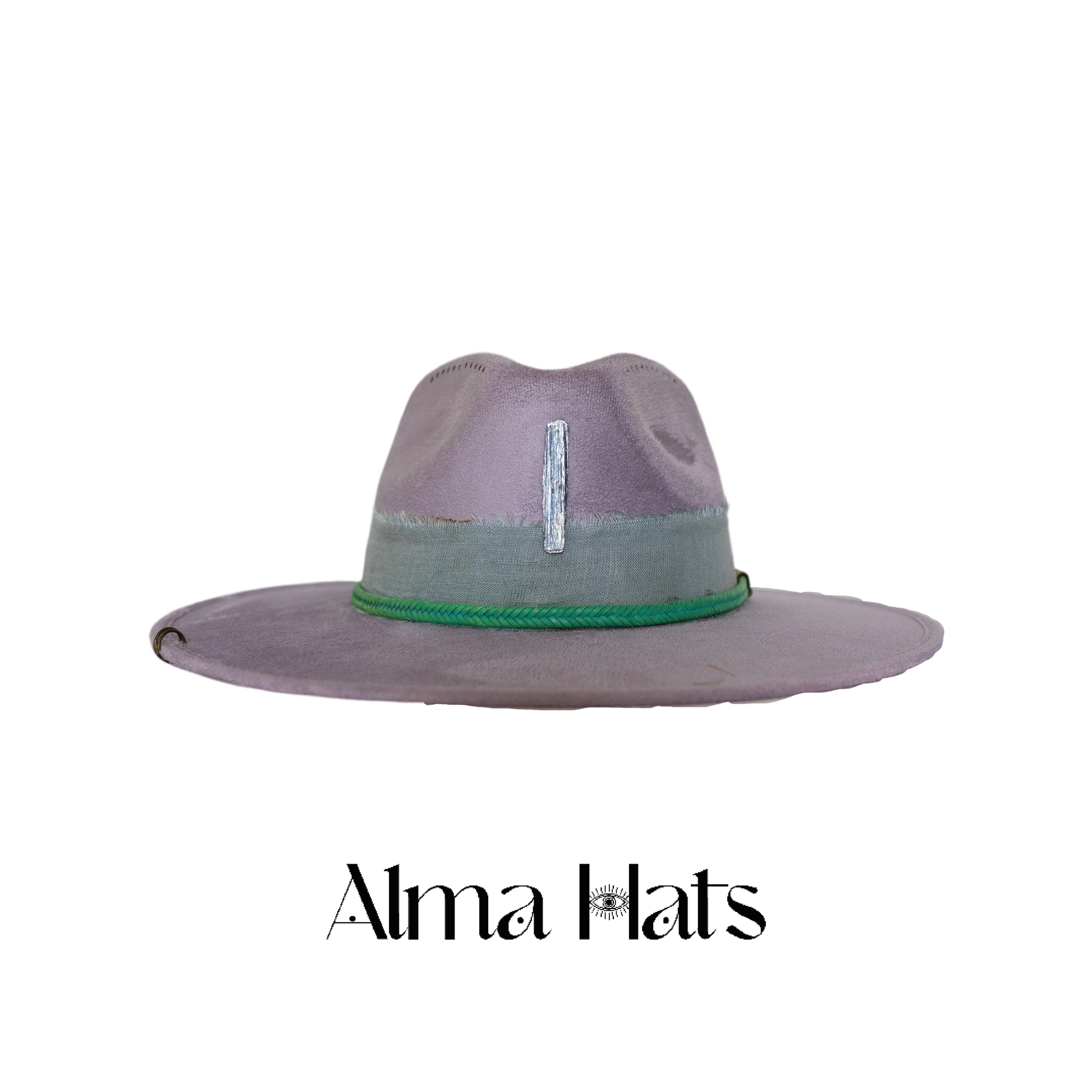 The KYANITA is more than just a hat, it’s a statement of style and individuality, perfect for those who seek to express themselves with elegance and authenticity. With its captivating kyanite stone, harmonious color palette, stylish fabric strip, and unique burnt dots, this hat captures the essence of natural beauty and sophistication, making it an ideal companion for any occasion.