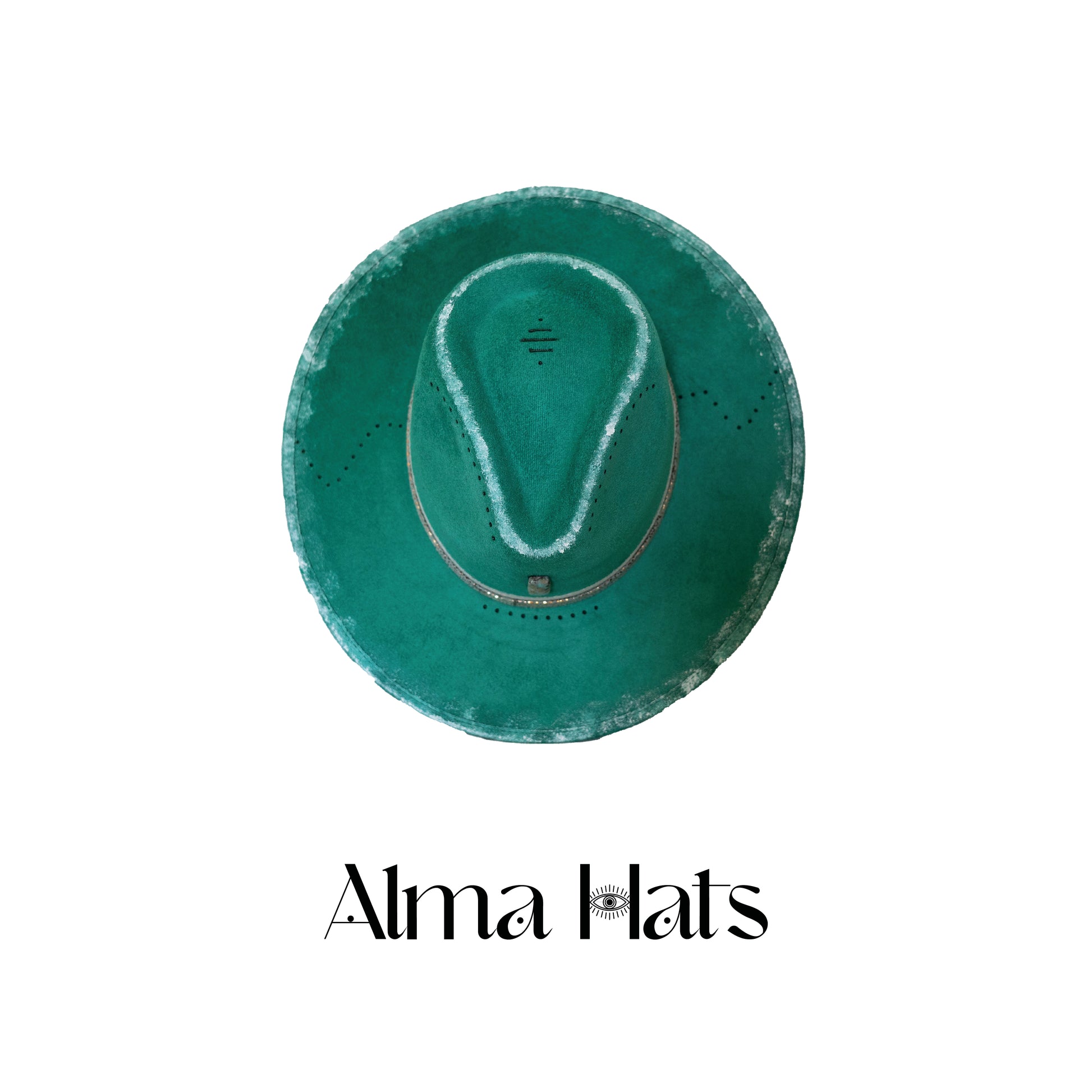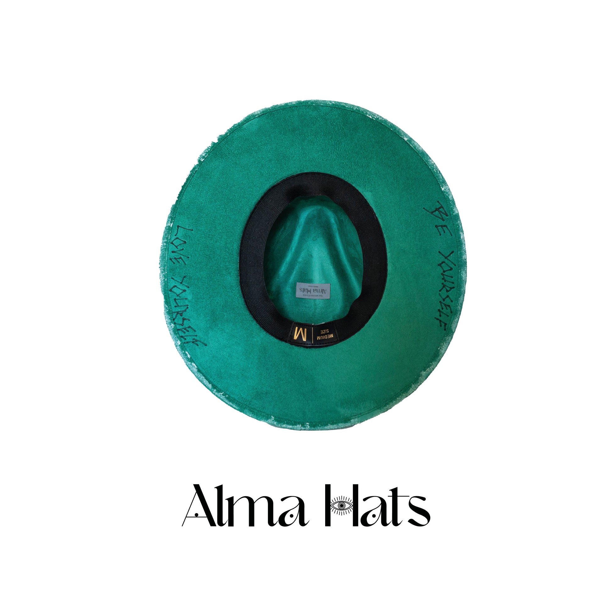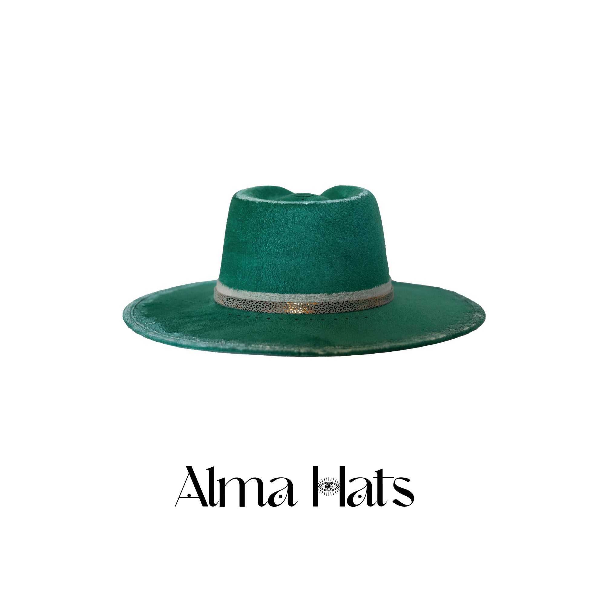 Crafted as a one-of-a-kind piece for the exclusive boutique Kurru Kurru at Cotton Beach Club, this mint green fedora captures the vibrant soul of Ibiza with an elegant, artisanal touch. Its fresh hue reflects the island’s coastal breeze and tranquil waters, while every curve and detail speaks of intention and craftsmanship.