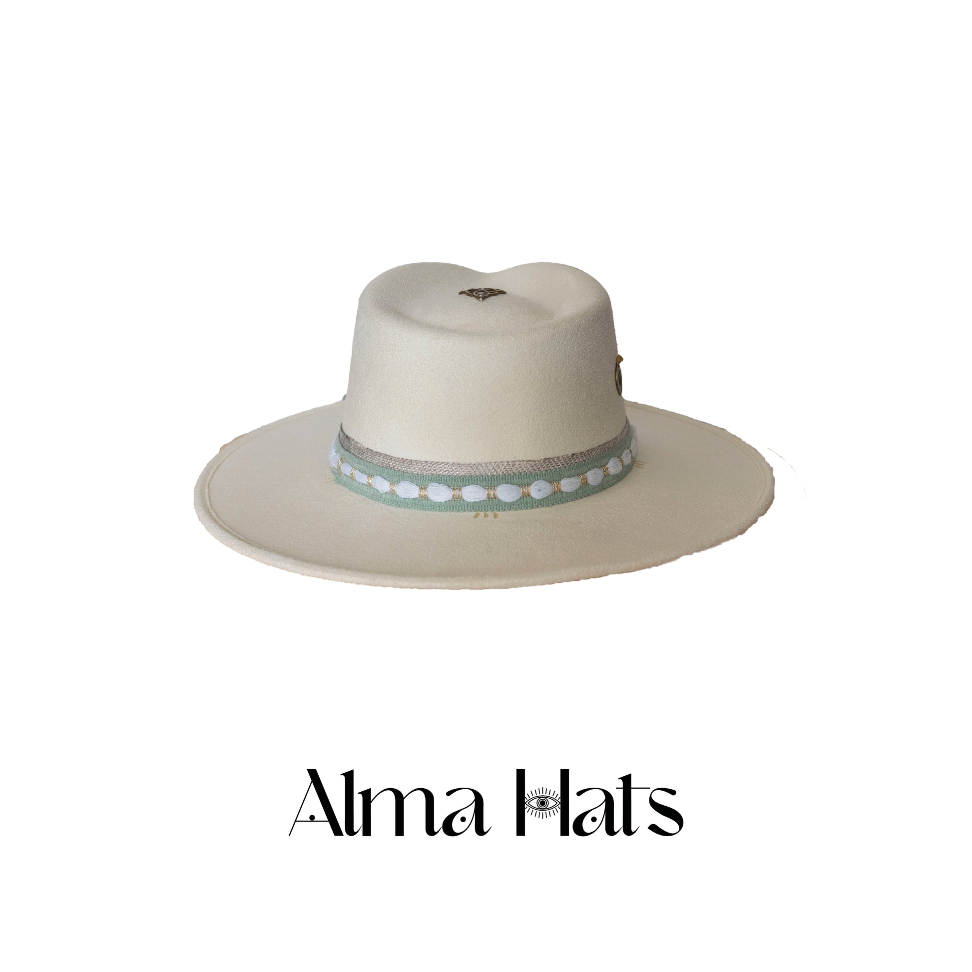 Custom Handmade White Fedora with Yellow Calcite – One of a Kind, Made for Justine
