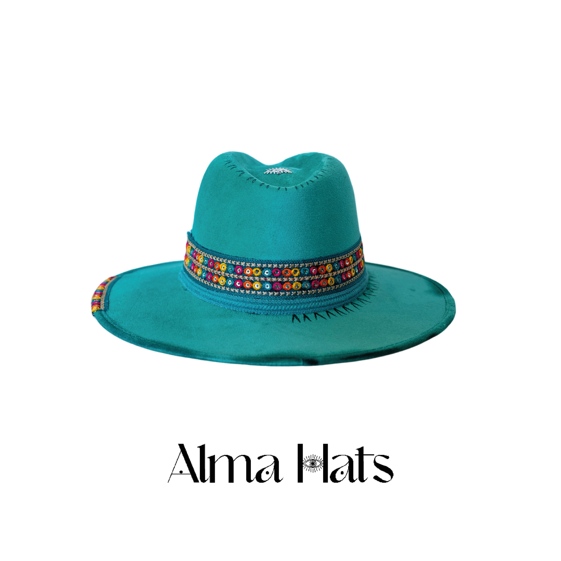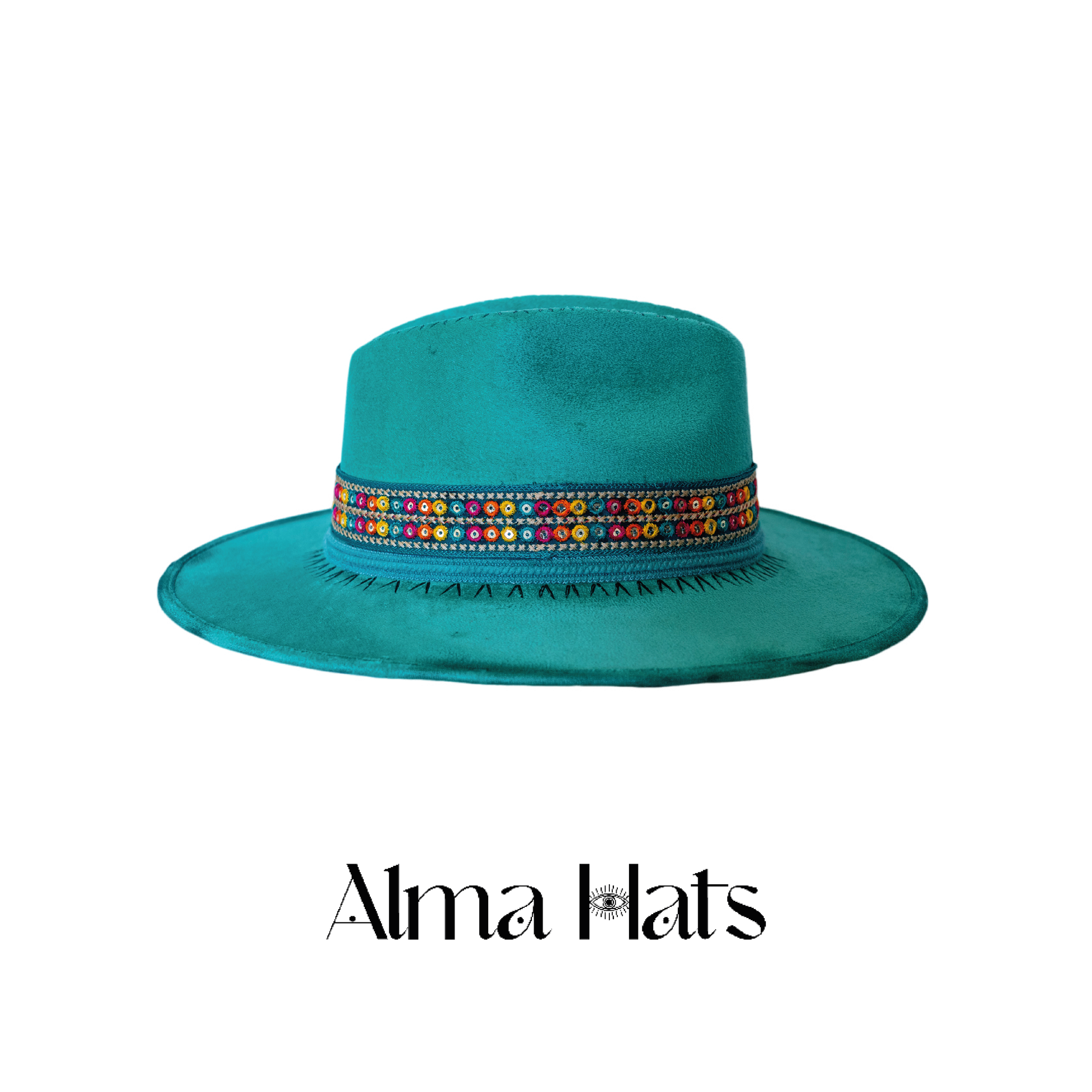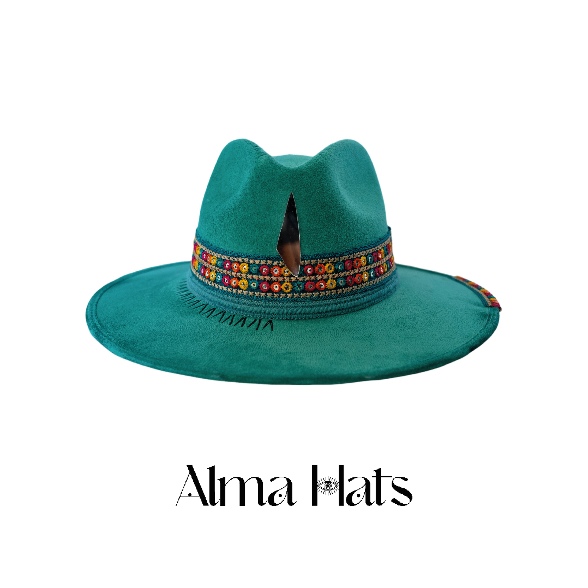 Introducing MINTY, a mint green custom hat that immediately catches the eye with its fresh, vibrant hue. In the center, a carefully placed piece of mirror adds an unexpected twist, reflecting light and drawing attention from every angle. The mirror is seamlessly integrated, creating a striking focal point that contrasts beautifully with the soft mint green fabric.