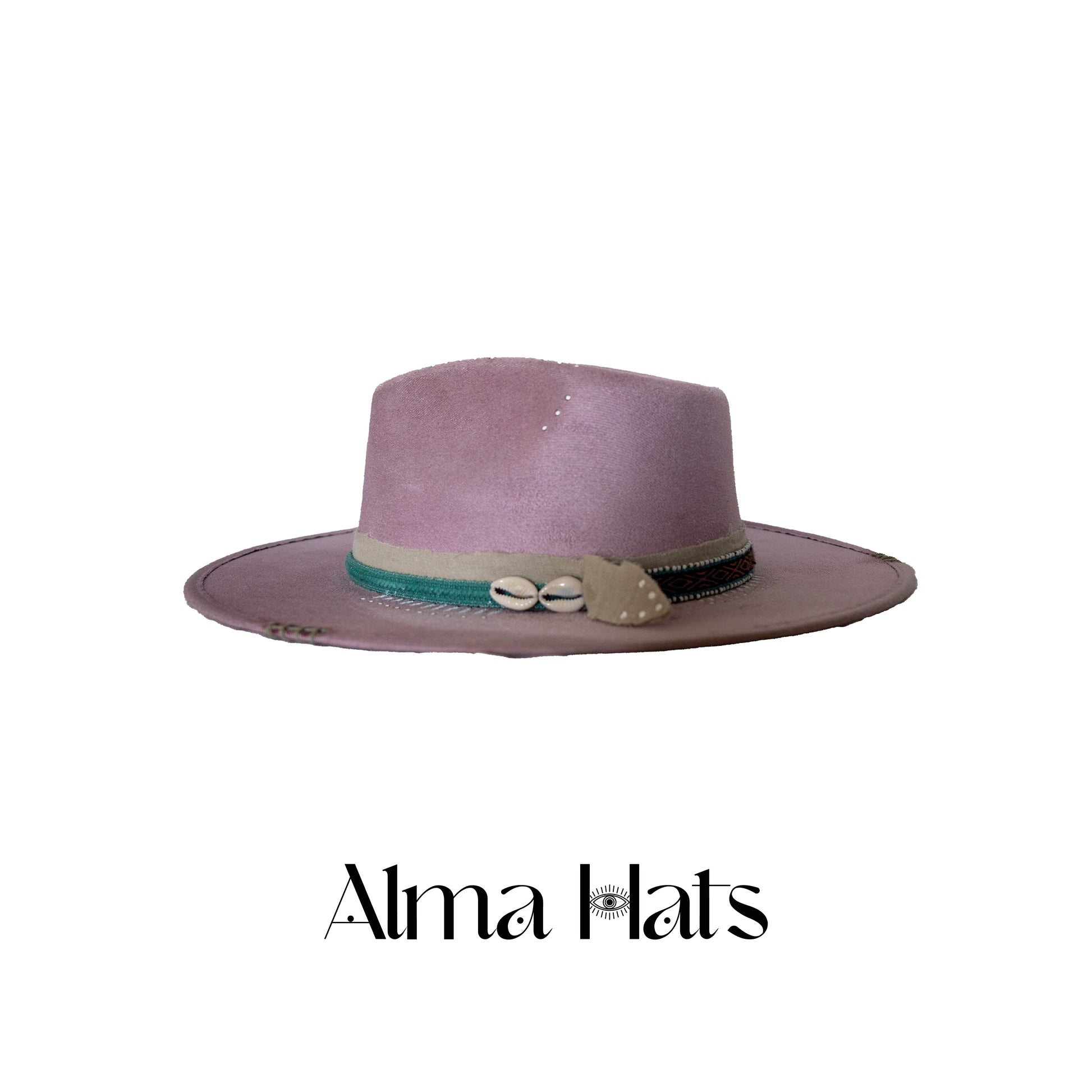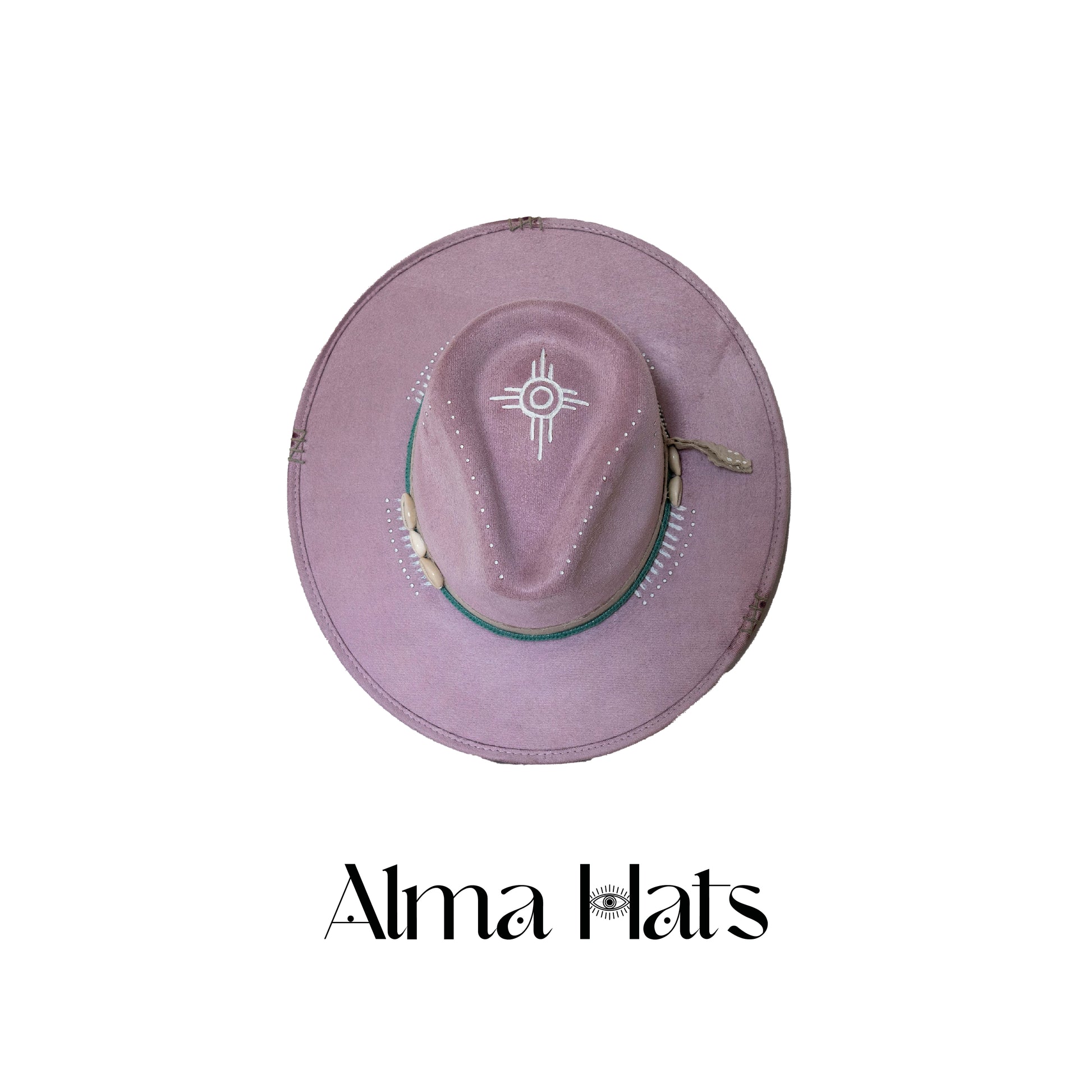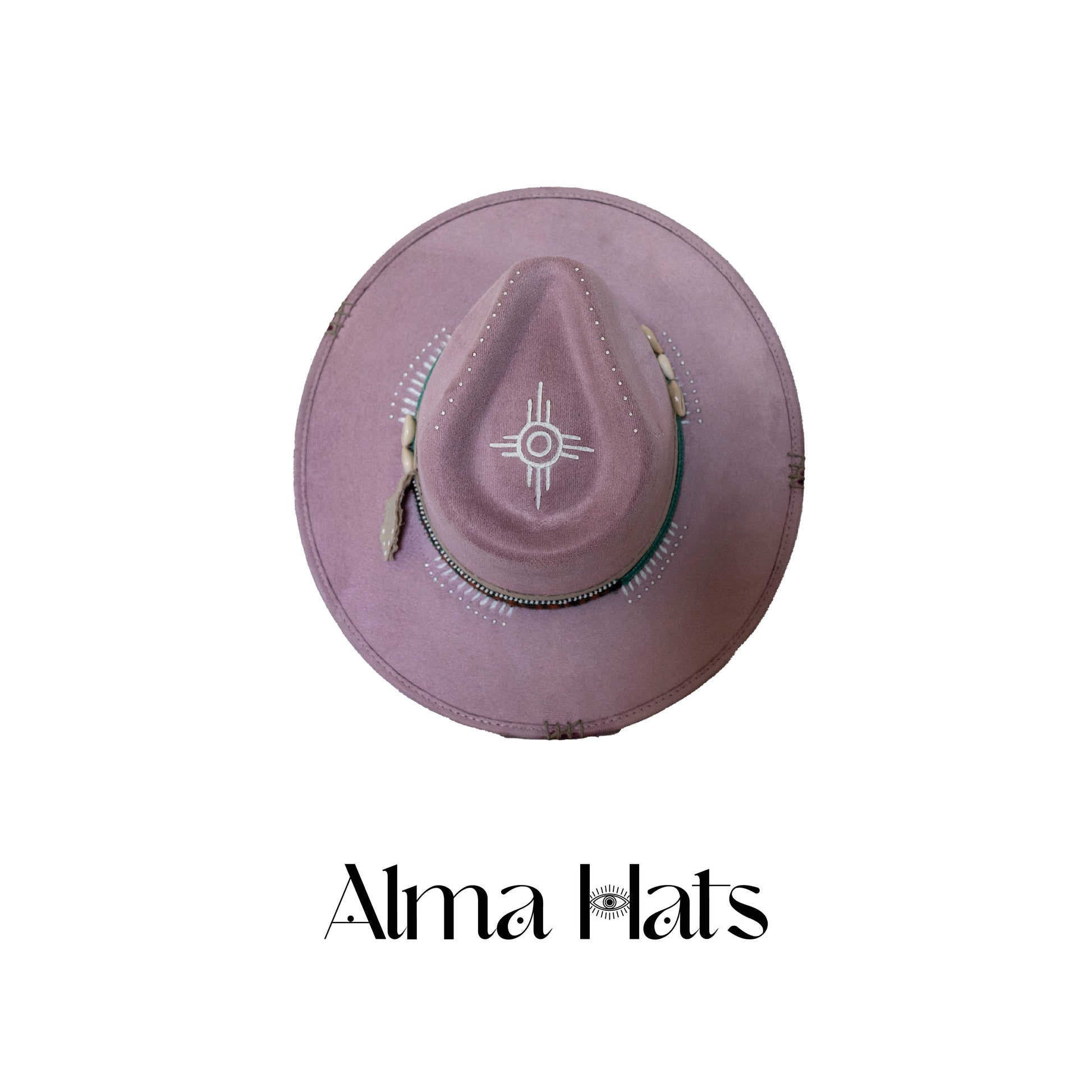 This bespoke pink fedora is a one-of-a-kind creation, handcrafted with intention and soul for a very special client. Inspired by the American sun symbol, it radiates warmth, vitality, and the quiet power of inner light. Every detail is shaped by hand, guided by the energy of the person it was made for—making it not just a hat, but a sacred extension of their essence.