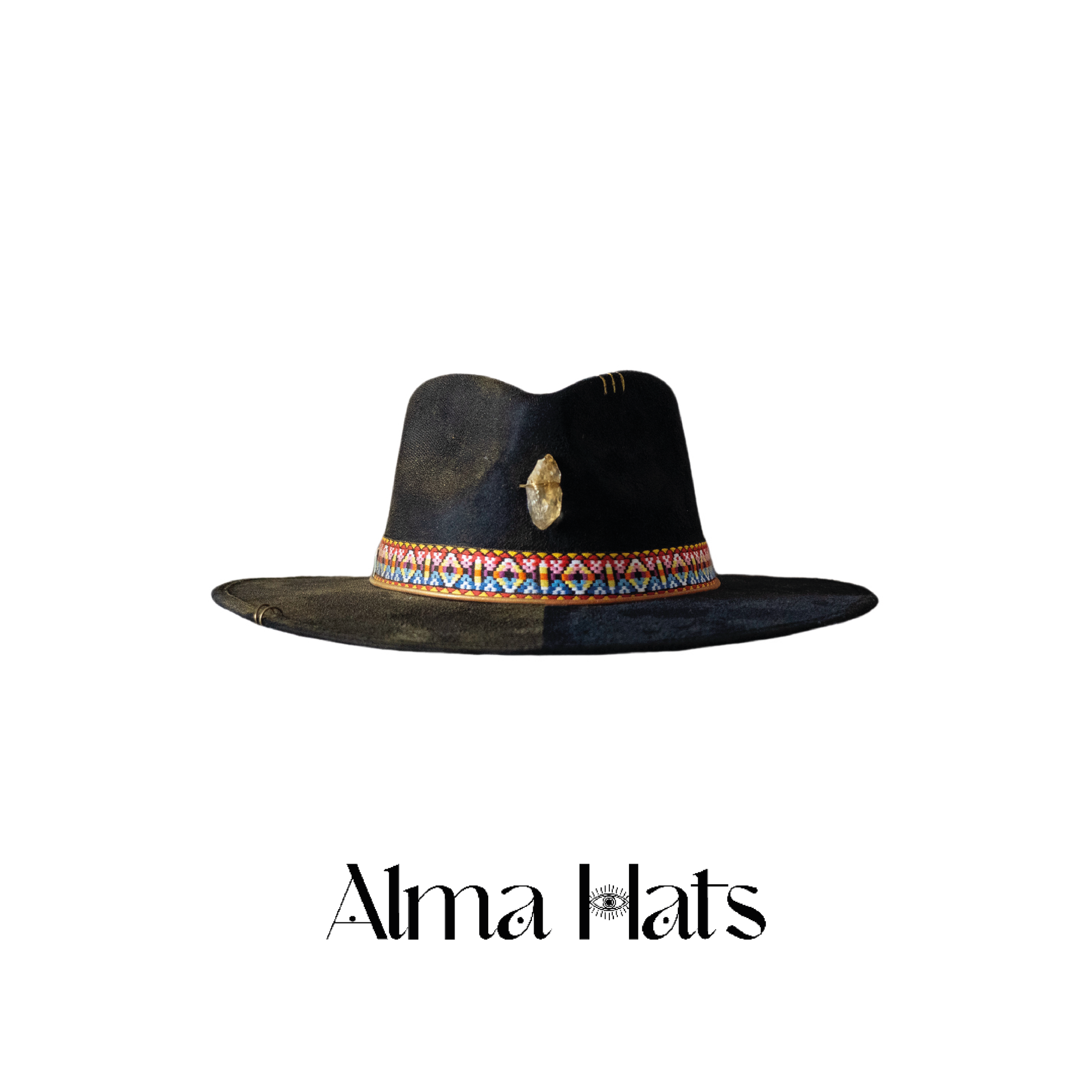 At the center of this masterpiece lies a captivating white citrine stone, known for its empowering properties. This gem, radiating subtle warmth, is believed to be a powerful tool for building confidence, overcoming challenges, and fostering mental toughness. Positioned at the heart of the hat, it not only enhances its aesthetic appeal but also serves as a talisman for strength and resilience.