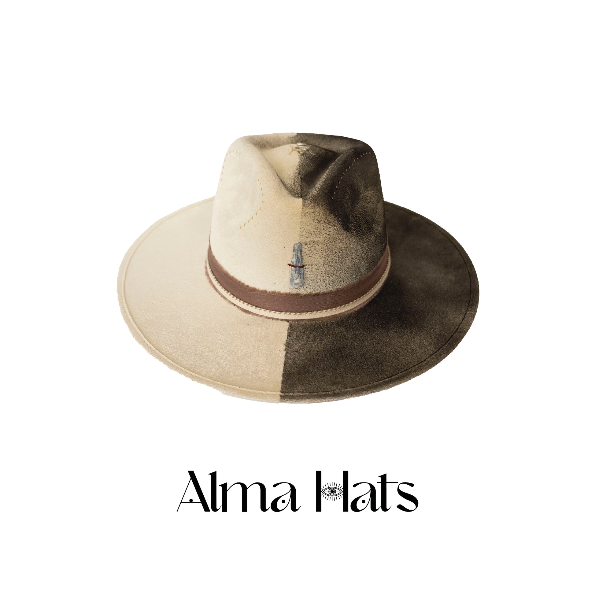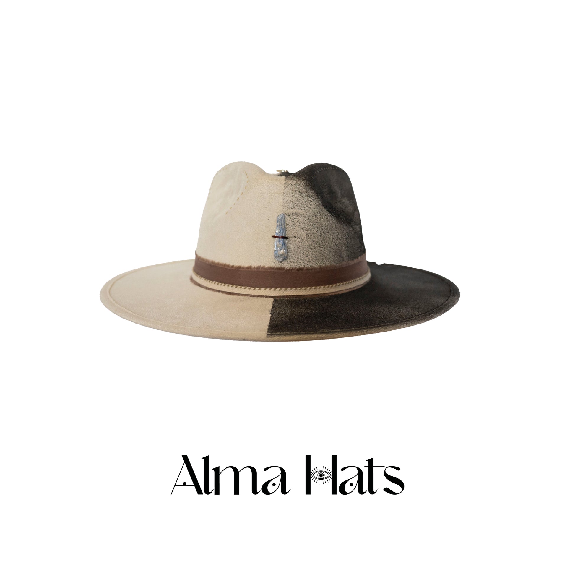 This hat is more than wearable — it’s a visual meditation, a union of shadow and light, form and flow. A singular piece made for those who walk the edge between worlds with grounded elegance and awakened spirit.