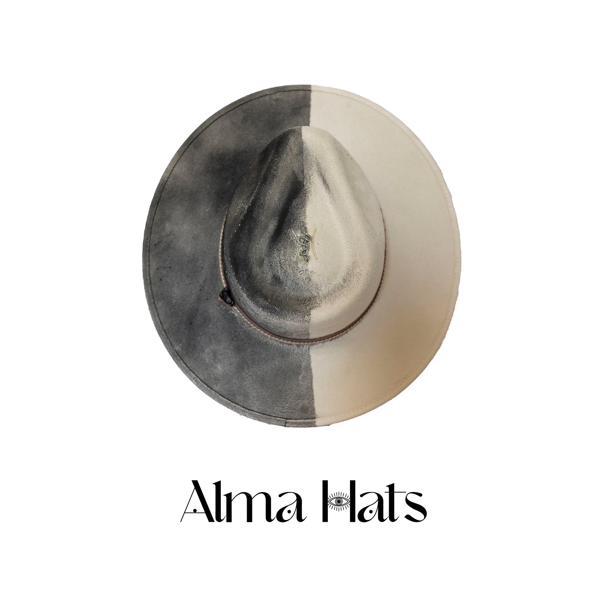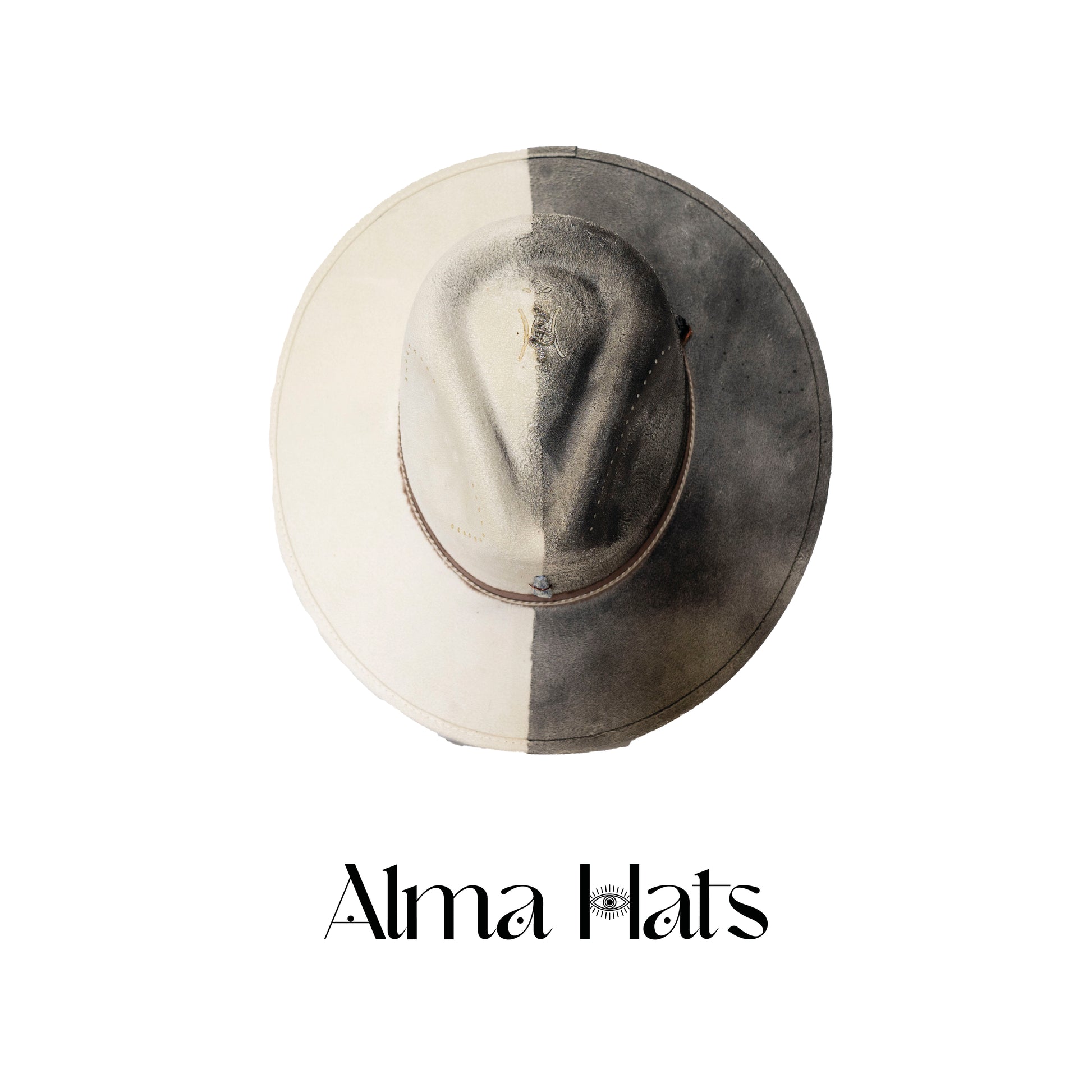 Striking in contrast and rich in meaning, this handmade custom fedora is a one-of-a-kind creation, hand-painted in black and white, split down the middle to symbolize balance, duality, and integration.