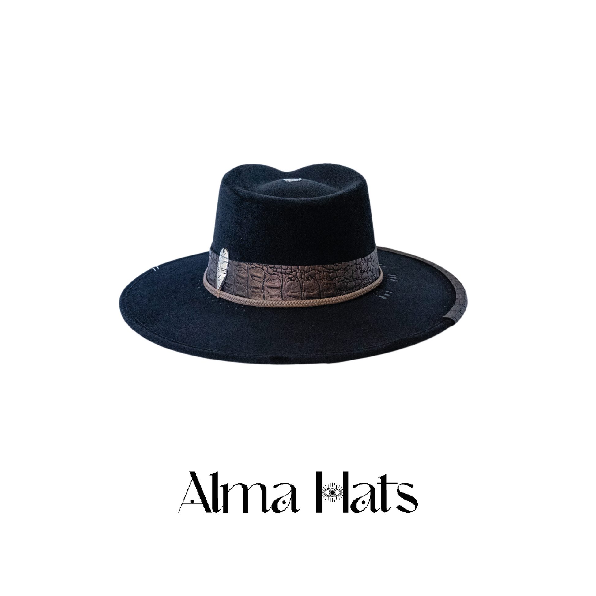 Introducing the MOON — a black arrow custom hat that captures the mystique and allure of the night sky. This hat is a striking blend of elegance and raw, natural beauty, designed for those who appreciate a touch of the celestial in their style. At the center of the hat lies a captivating kyanite stone, its deep blue hues reminiscent of a moonlit night. The kyanite is not just a centerpiece; it’s a symbol of tranquility and inner strength, bringing a sense of calm and focus to the wearer.