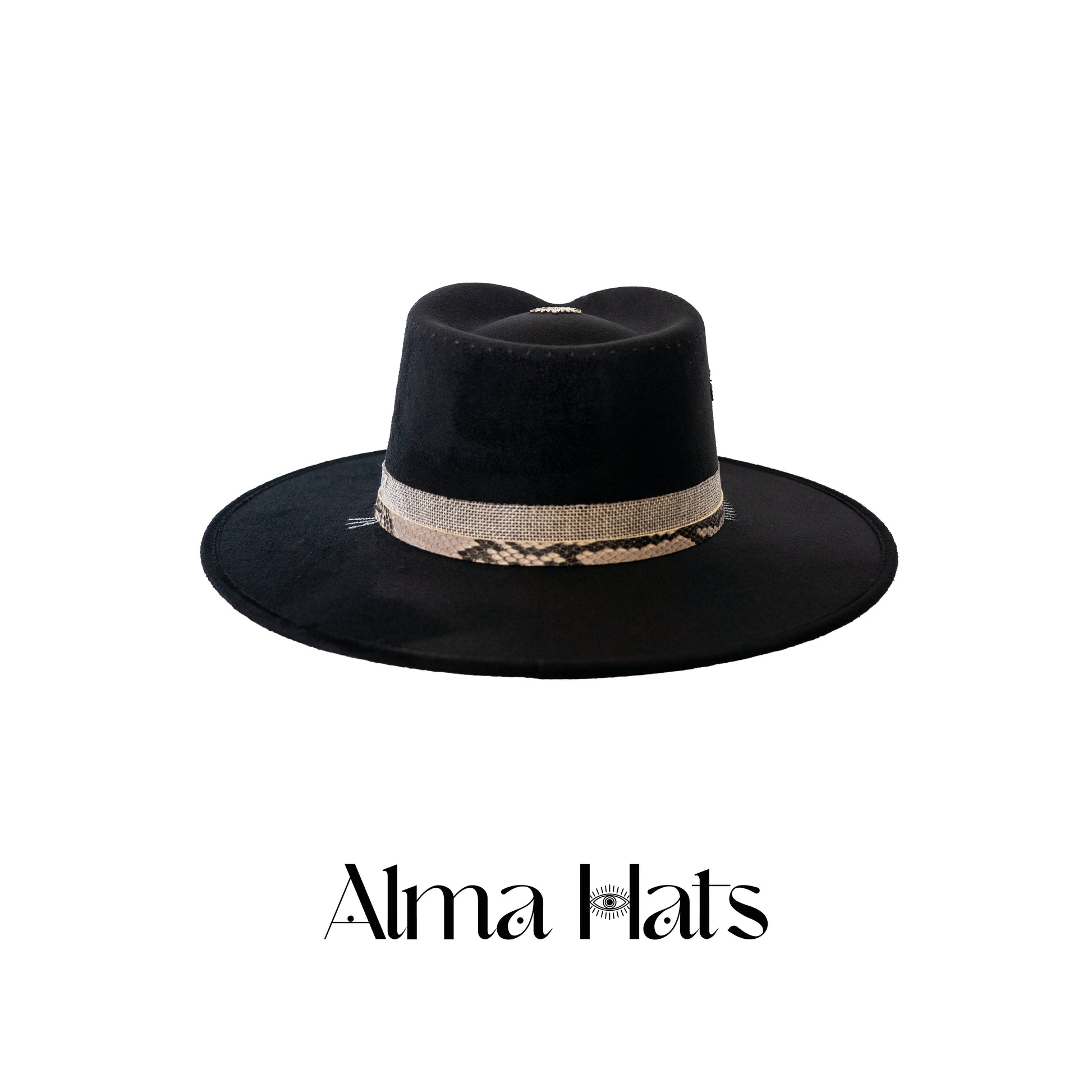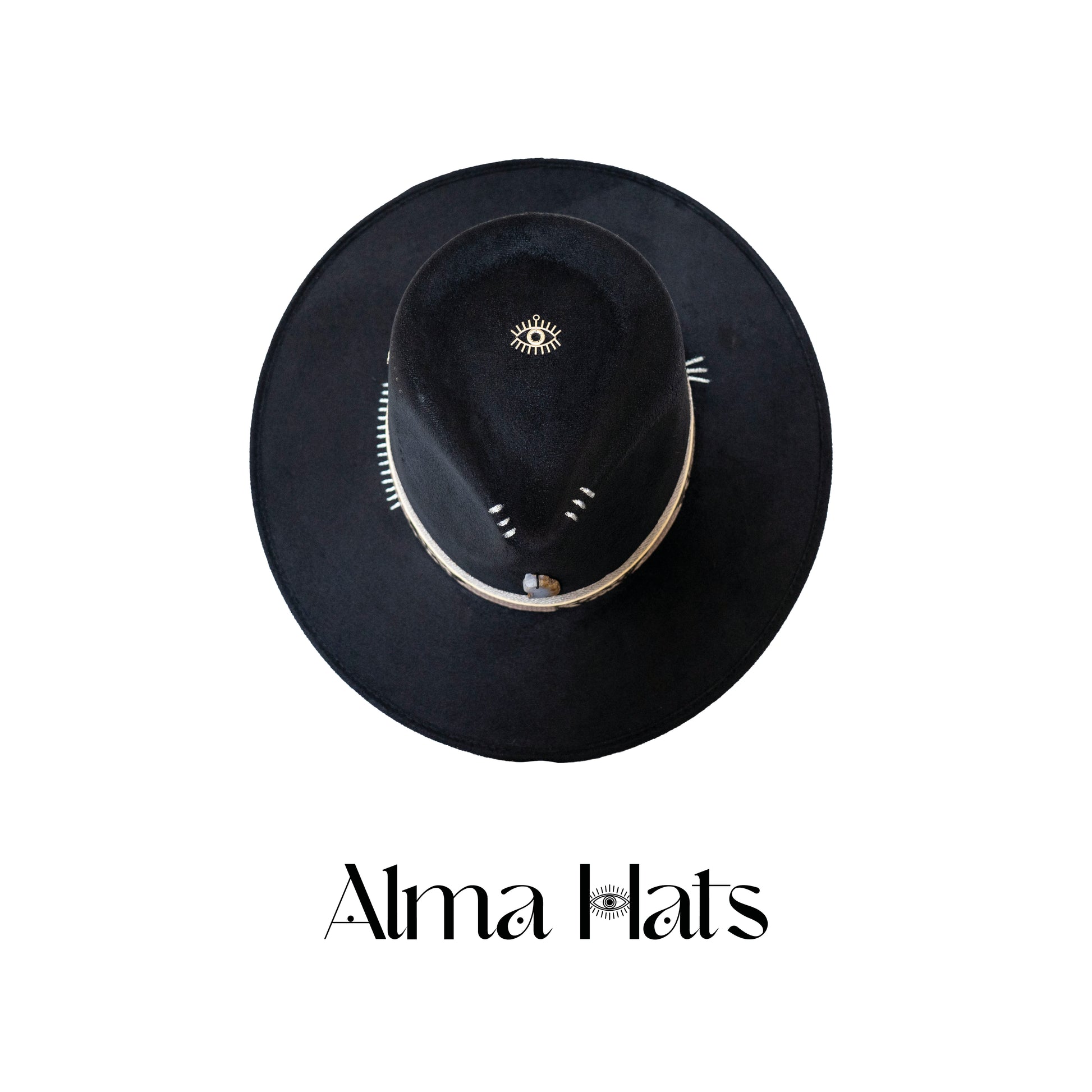 Handmade Black Fedora with Agate & Pyrography – One of a Kind