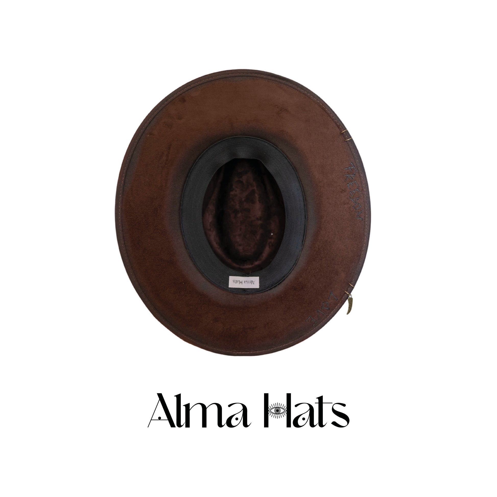 Crafted with intention and soul, the “Wild Wanderer” fedora is a bespoke piece made on demand for a true traveler. This one-of-a-kind brown hat captures the untamed spirit of the open road, designed for those whose hearts are bound to adventure and whose souls seek the freedom of the wild.