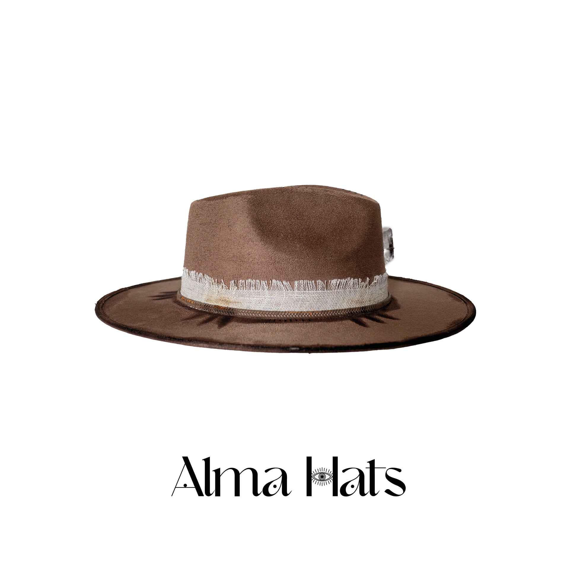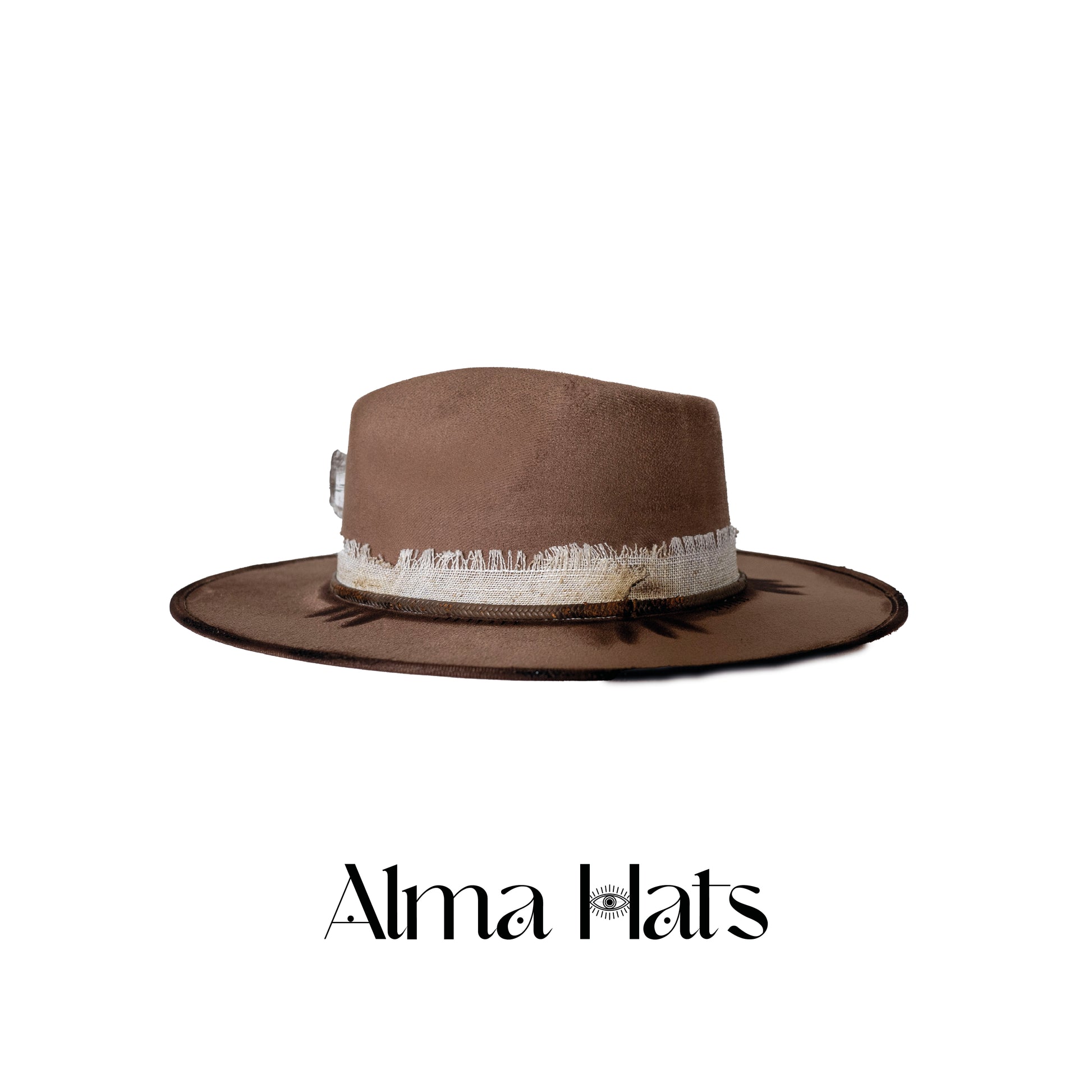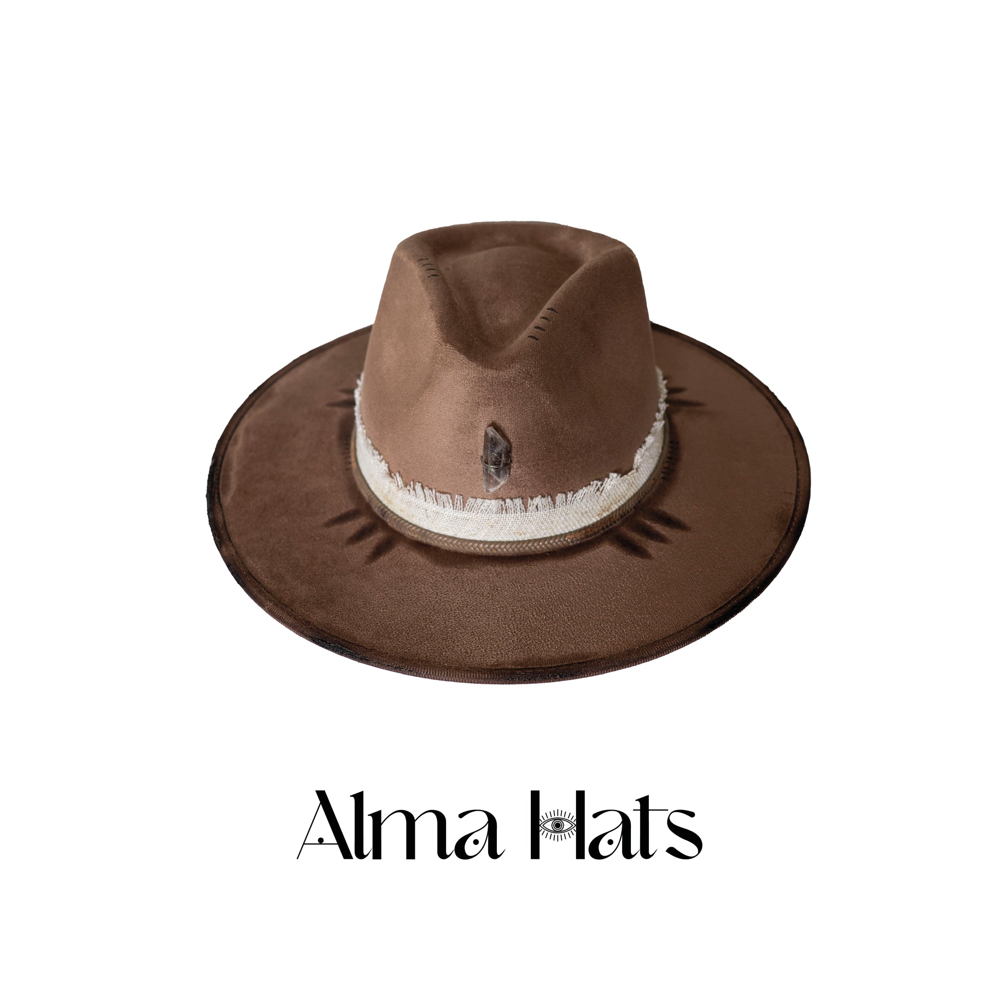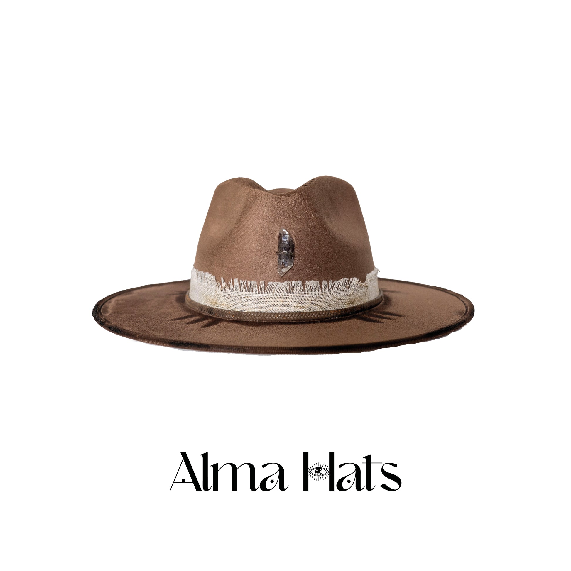Rugged, refined, and powerful, this handmade grey-brown fedora is a one-of-a-kind creation, designed for those who embrace boldness with elegance. At the center, a quartz stone acts as a grounding force, offering protection and energetic cleansing. Known for its ability to purify and amplify positive energy, the quartz stone provides balance and clarity, making it a perfect symbol of strength and inner peace.