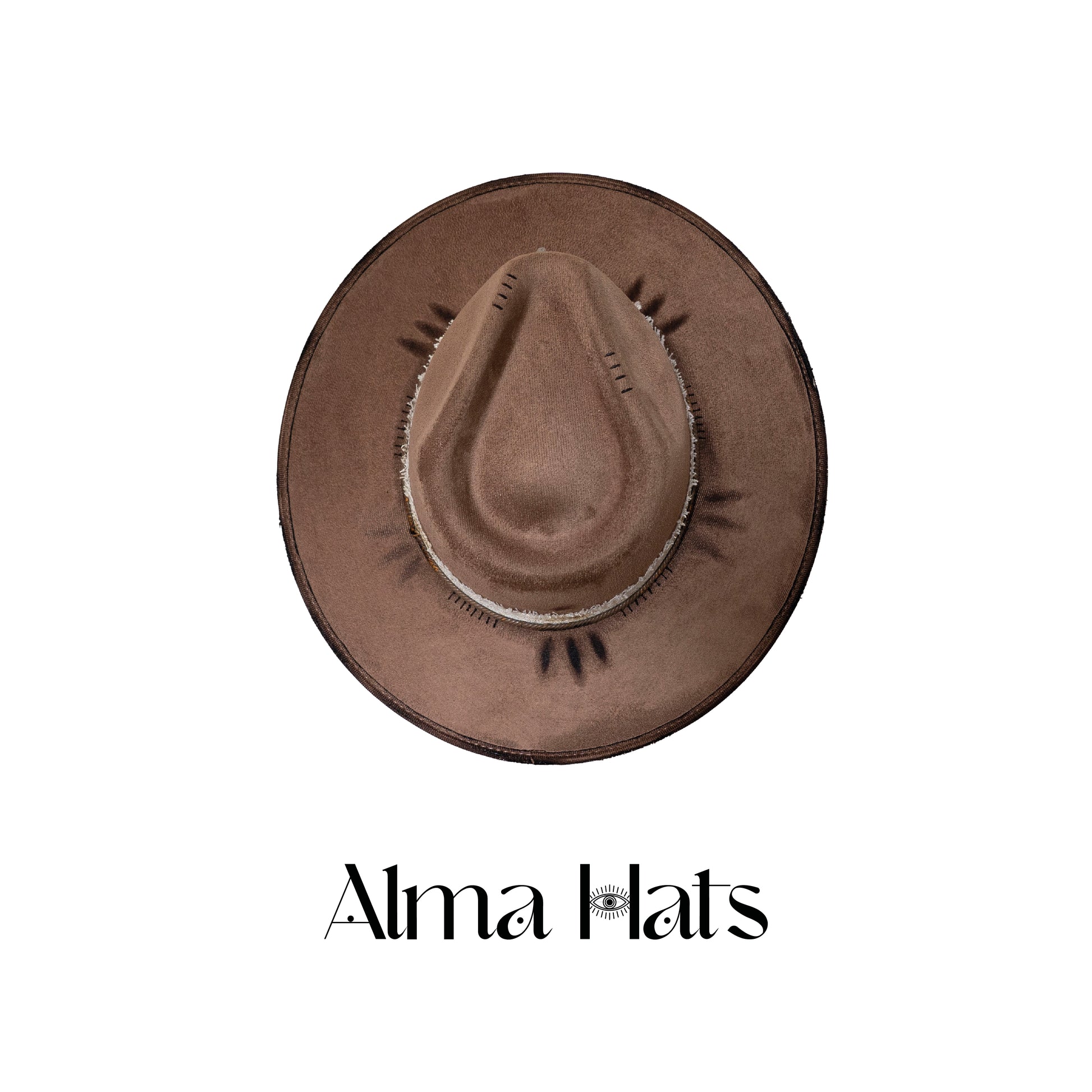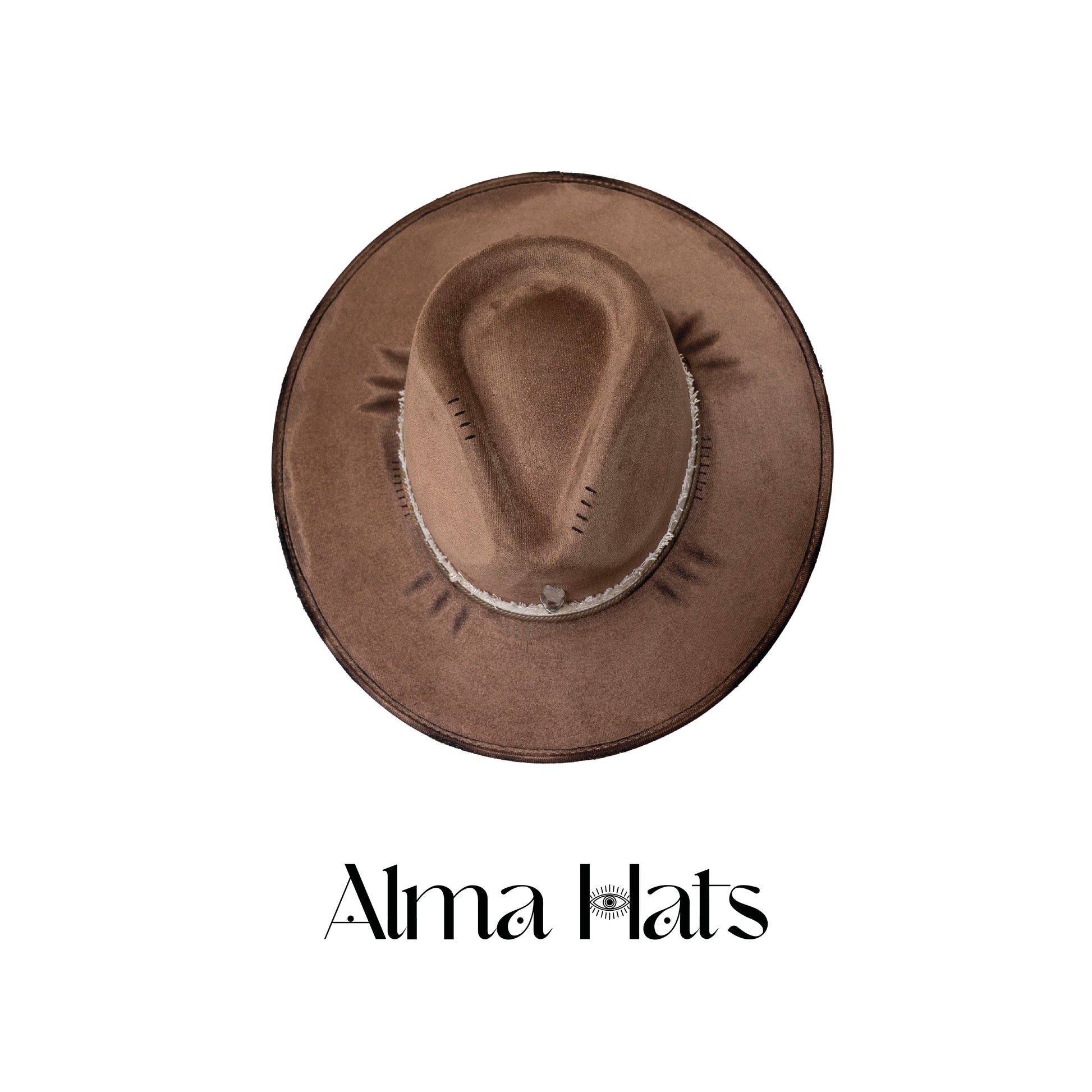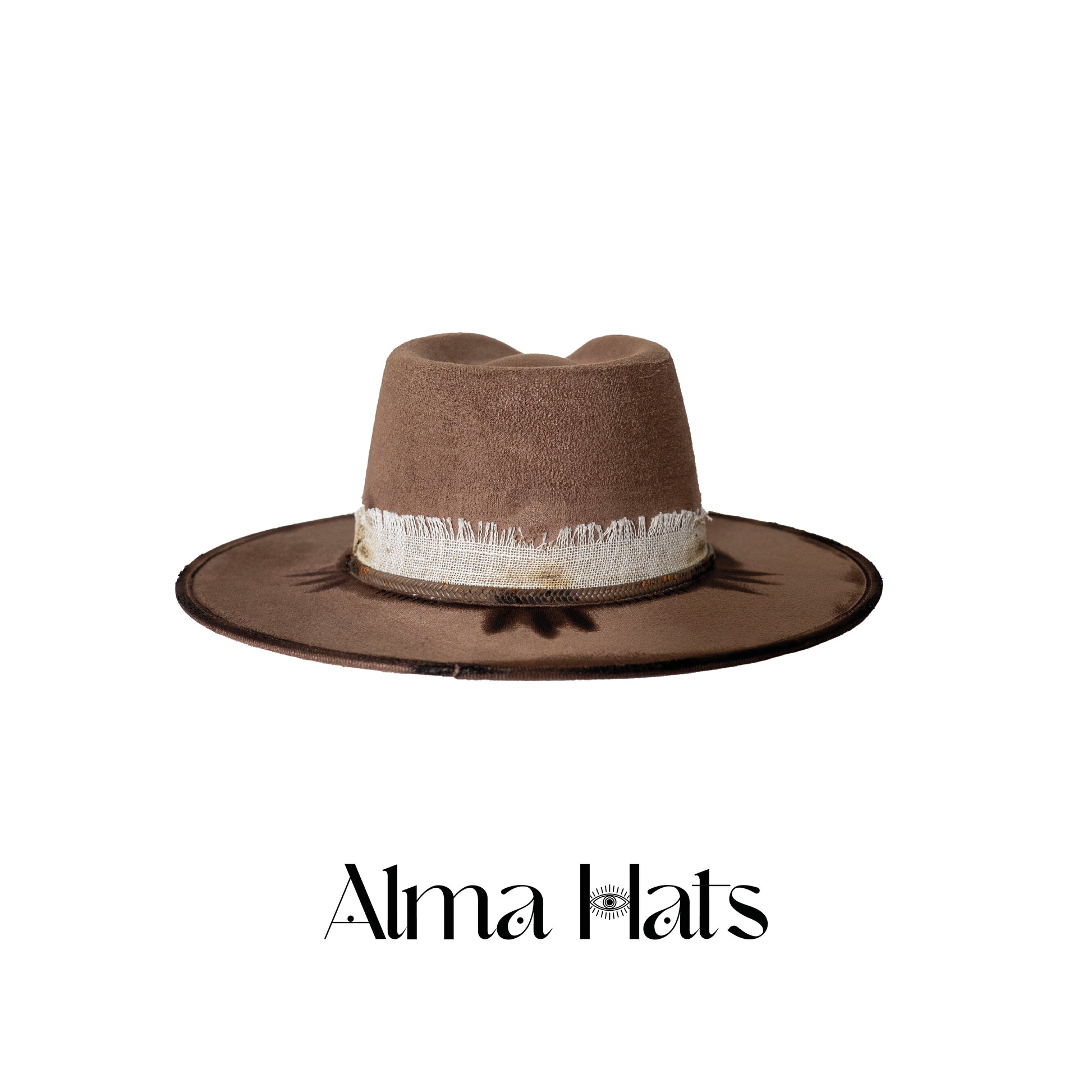 What truly sets this hat apart, however, is the savage pyrography etched along its surface. The intricate, fire-carved patterns create a sense of wild energy, infusing the hat with an untamed spirit while maintaining its refined aesthetic. Each mark tells a story of raw strength and freedom, making this piece truly unique.