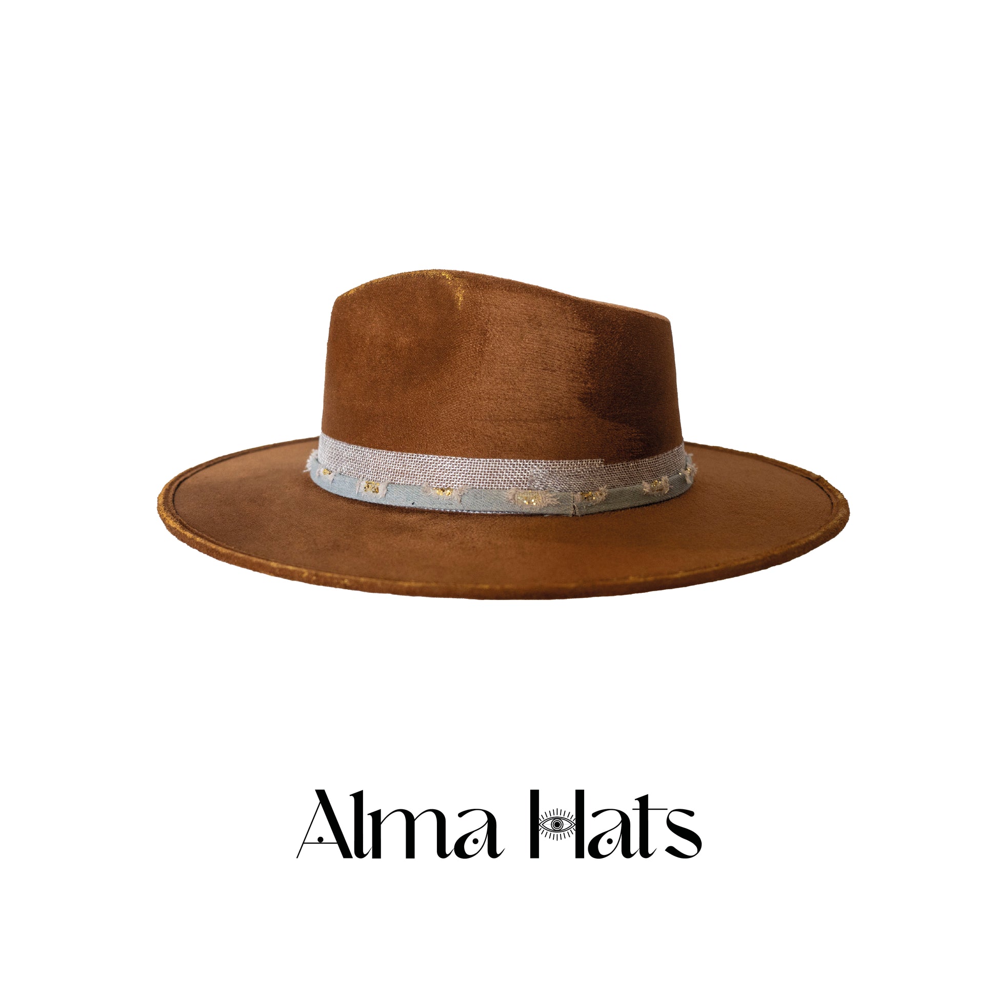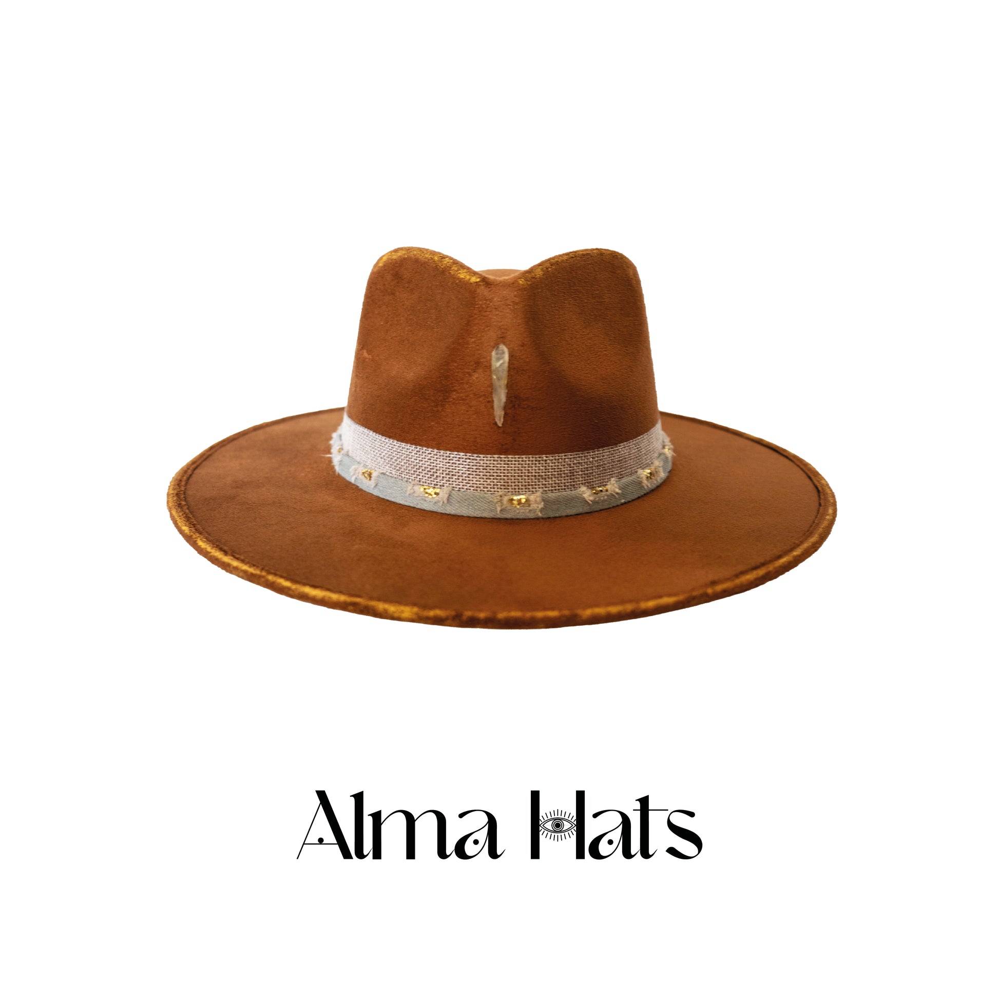 Handmade Camel Fedora with Yellow Calcite & Gold Effects – One of a Kind